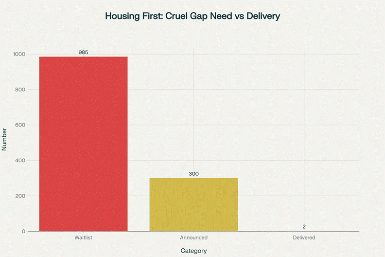 3. Housing First Accountability: The government announced 300 places in September 2024. Only 2 delivered by November. Demand monthly public reporting on Housing First delivery with consequences for failure.[13]