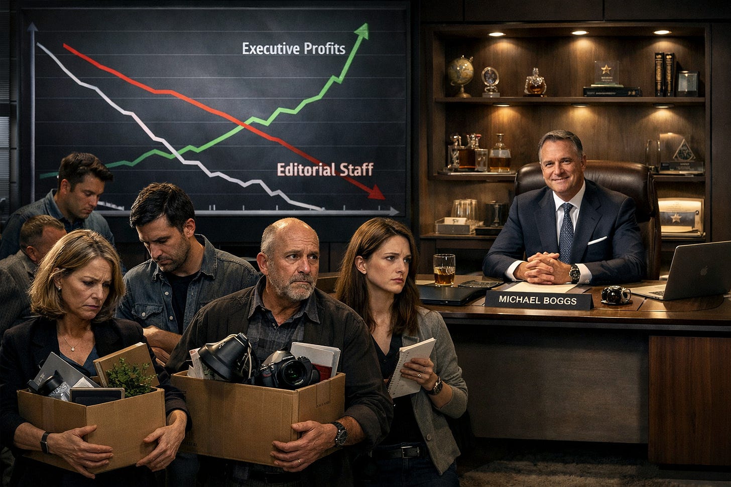 While media CEOs plead financial hardship, they impose brutal austerity on working journalists.
